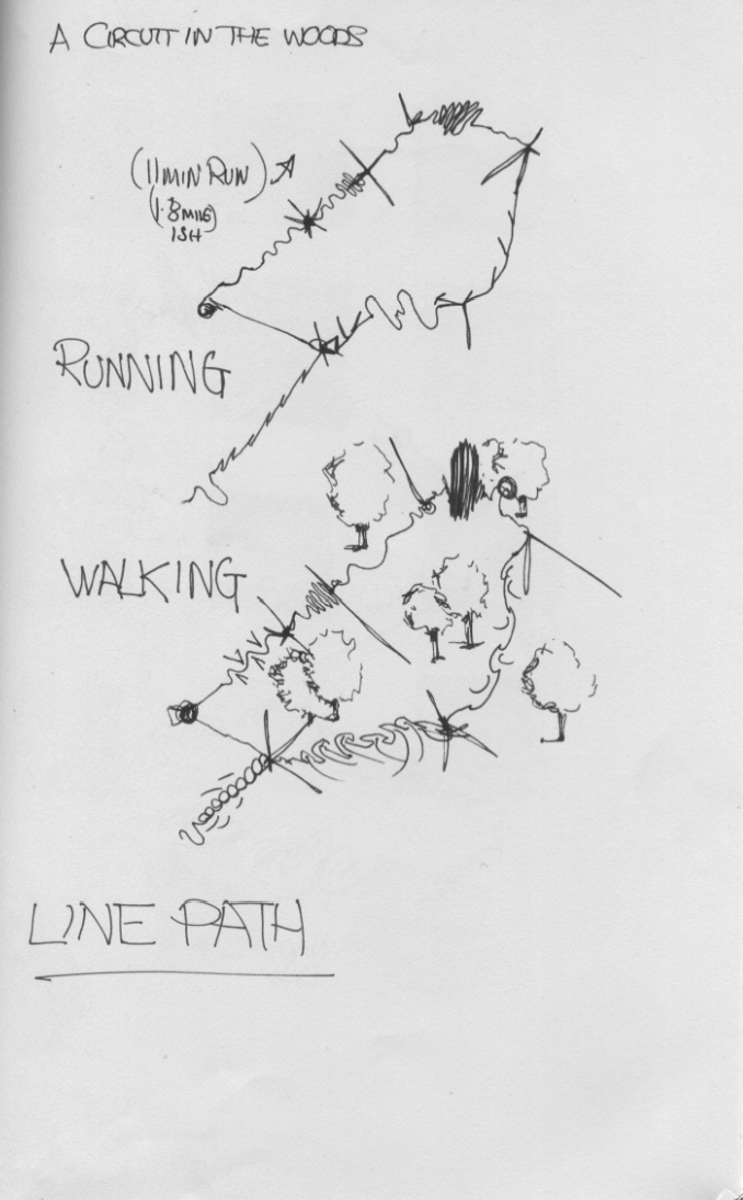 Had a go and understood the more i did it. A hilly bit of woodland. The feel rather depends on the time of year. Summer hard, compacted and dusty. Winter wet, slippery or rock hard. Seasons colours, sounds and smells. All very poetic, but relevant.