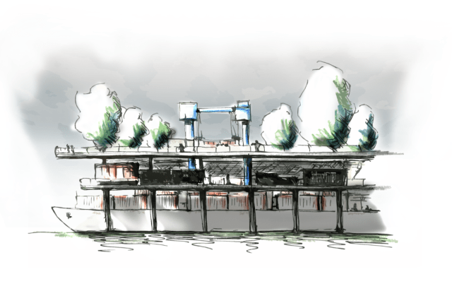 Ship in dock from the River