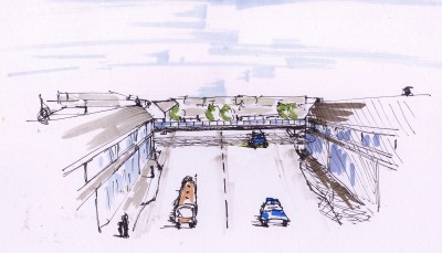 A lot going on in the chosen area. I can visualise in my head what is going on, which is no help to the viewer so more perspective sketches needed, even the two minute cross section type.