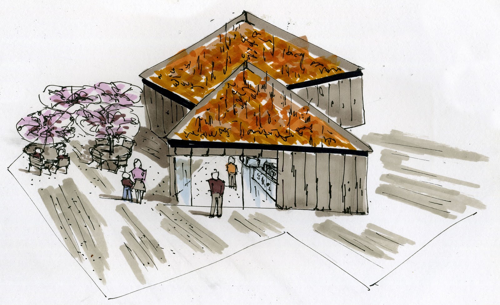 Perspective Ahhh need to do sketch up model for depth of field, over all a bit miffed. I think on the marking front i got away with it and it was generous. As the seduction of rendering helped the lack of skill on the perspectives, another day another attempt.