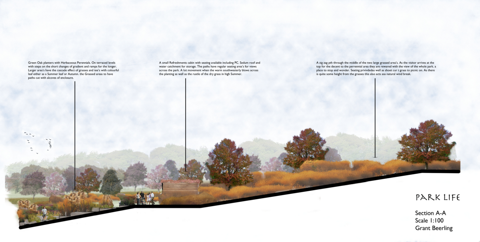 If the park can demonstrate the example of the naturalistic style with the slightly more formal prairie style then this can help the local authority to use this style as the public will have seen this in the park. Complaints can be referred to the park as an example. A case of re education. Use this style for roadside verges and cut down on the present high maintenance amenity grass that is the norm